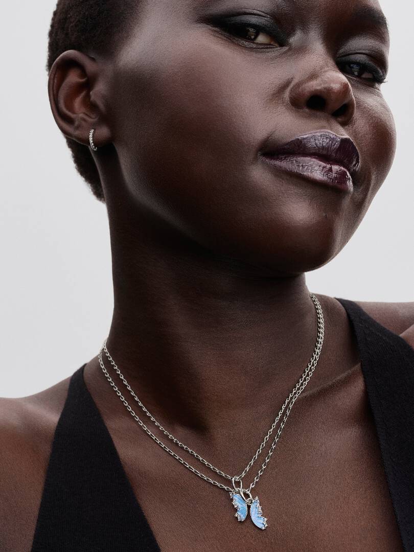 Made to share, designed to shine. This sterling silver splittable butterfly charm features sparkling cubic zirconia and shimmering blue enamel on the front, with the engraving 'TOGETHER ABOVE ALL' on the back of each.