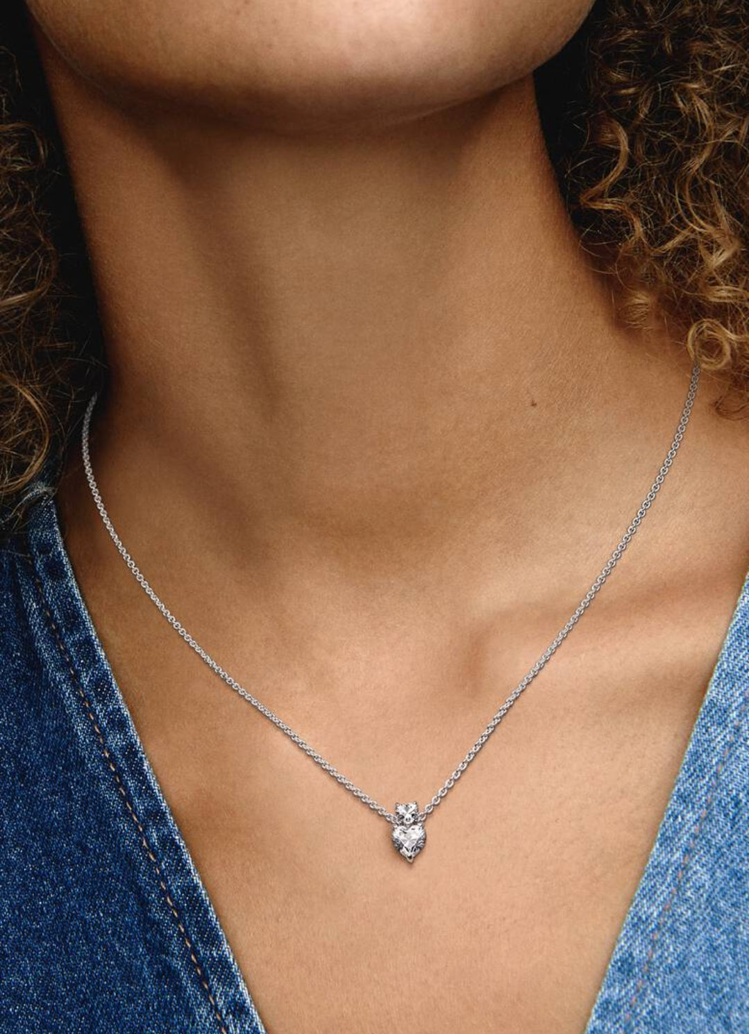 Double Heart Pendant Sparkling Collier Necklace